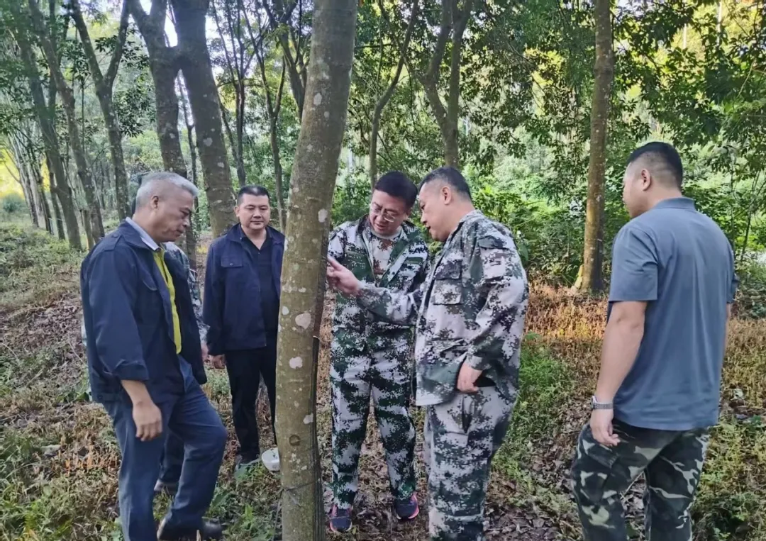 5月29日至30日,新澳门六合彩官网 党委副书记、总经理杨宇赴西联分公司调研,实地察看中小苗、开割林段、收胶房及党员活动室,全面深入了解西联分公司割胶生产、胶园管护、未规范土地整治、胶园被占地回收、党建活动阵地建设以及收胶房管理等重点工作开展情况。